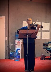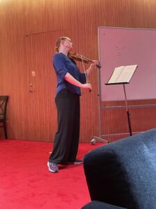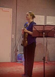Inden prøven fortalte koncertmester Emma Steele, kapelmusica nr. 1069, om sin karriere og om jobbet som koncertmester på Det Kongelige Teater. Som indledning og som afrunding fik vi desuden serveret en minikoncert med Allemanden fra J.S. Bachs Partitia No. 1 for Violin (BWV 1002) og Adagioen fra sammes Violinsonate No. 1 (BWV 1001). Det var ren balsam for øregangene – stor tak til Emma!